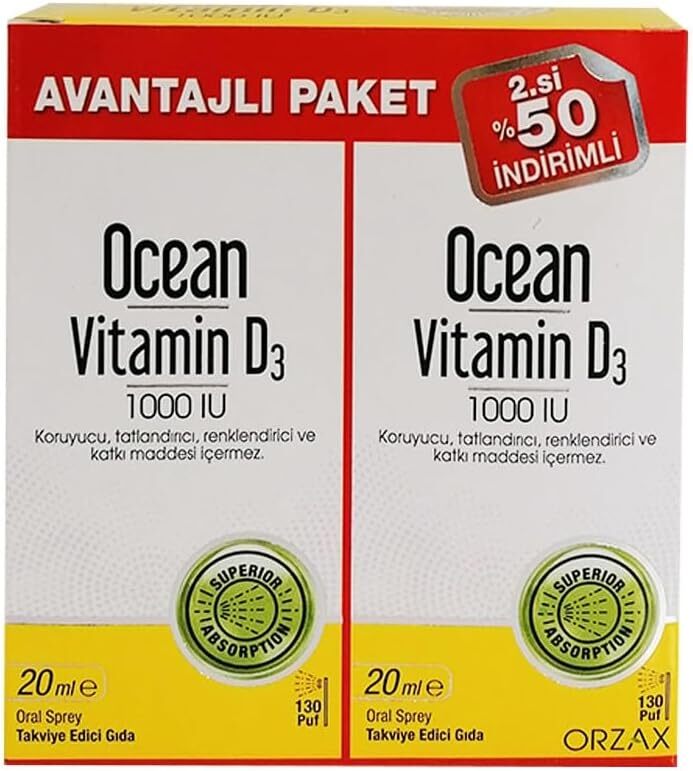 OCEAN ВИТАМИН Д (VİTAMİN D) 1000 МЕ СПРЕЙ 2-ая упаковка с 50% скидкой